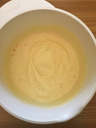 Quando lo sciroppo avrà raggiunto la temperatura indicata dal termometro, versatelo a filo nella ciotola dove avete montate le uova con lo zucchero. Montate con le fruste fino al raffreddamento completo.]